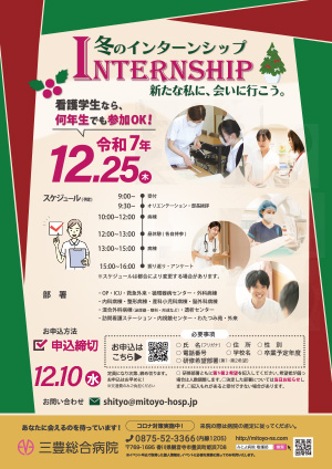 未来の自分にとって様々な選択肢がある三豊総合病院。冬のインターンシップを実施することになりました。ひとことで看護師といっても多様な領域があり、どんな領域で自分が活かせるのかを考えるのはやはり体験をするのが一番近道です。