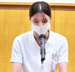入職して10カ月が過ぎようとしています。入職時は緊張や不安も大きかったと思いますが、スタッフにも慣れて今は西3病棟の一員です。患者さんに接する様子は丁寧で、顔を覚えてもらい名前で呼んでくれることもあり、看護のやりがいに繋がっているのではないでしょうか。Fさんの成長をこれからもみんなで見守っていきたいと思います。